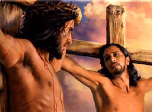 < 耶穌對他說:「我實在告訴你,今日你要同我在樂園裏了。」>