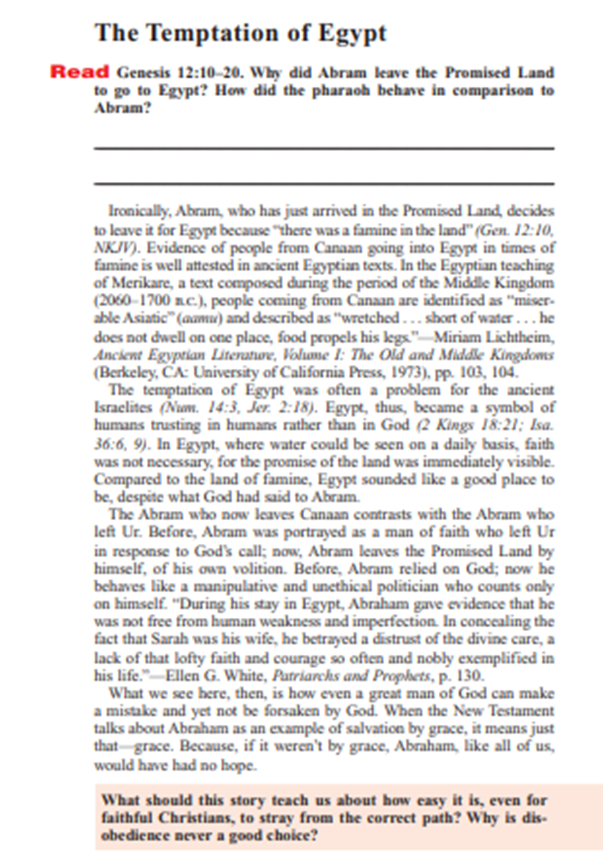 但是,當他離開迦南,前往埃及的時候,他並不是憑信心前行,