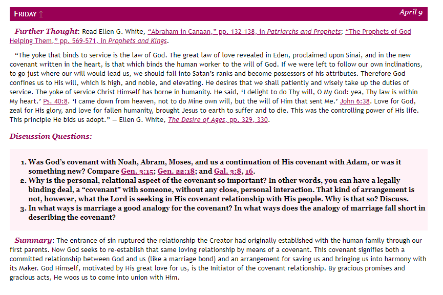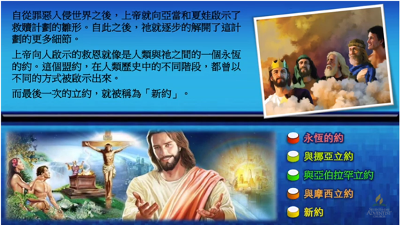 「自從罪惡入侵世界之後, 上帝就向亞當和夏娃啟示了救贖計畫的雛形。 自此以後, 上帝就逐步的解開了這計劃的更多細節。」