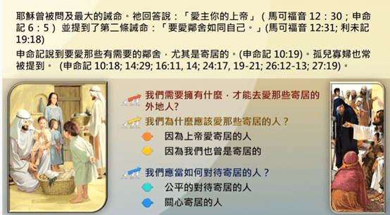 這一課我們分三個範疇來探討如何去愛那些寄居的人。