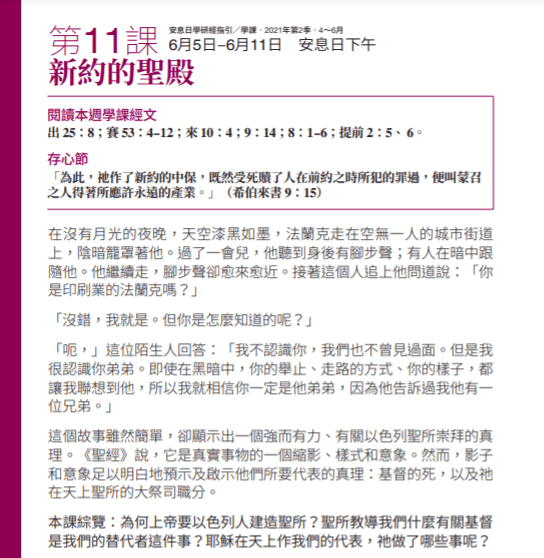 在這一課, 就讓我們一起來研究, 希伯來書內所說的 : 新約聖所的道理。