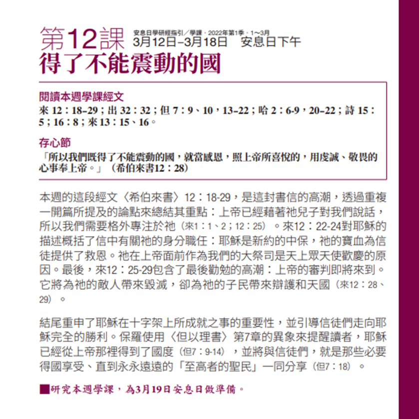 備註: 口誤 ~ 希伯來書 12 章錯讀為 29 節 (YouTube) ,應該為 26 節