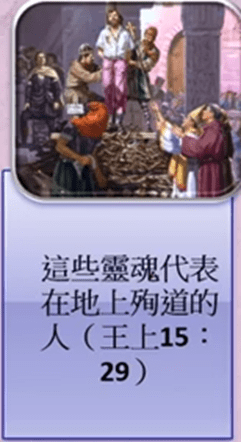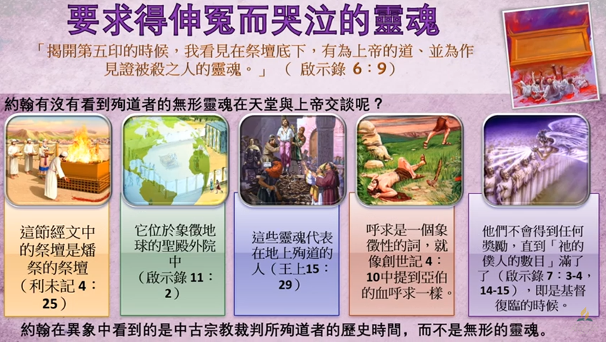 各位,約翰在異像中,看見的是中古宗教裁判所殉道者的歷史時間,而不是無形的靈魂。