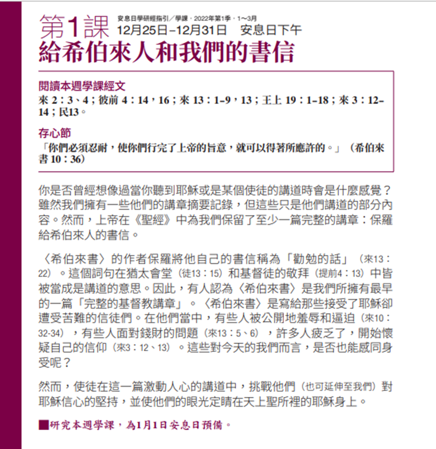 🎍 請看下一個題目:「就在這末世: 希伯來書的信息」~ 給希伯來人和我們的書信 ~ 認識真理