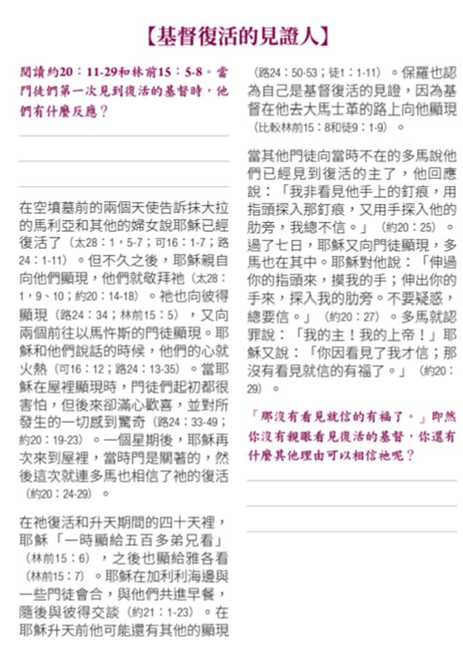 各位,我們憑著信,也可以成為 耶穌復活的見證人。