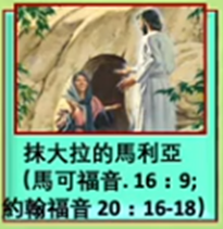 然後在馬可福音十六章九節,記載 耶穌向抹大拉的馬利亞顯現。