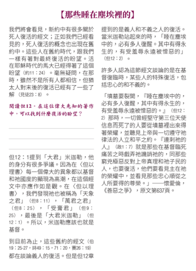 🎍 請看下一個題目: 「論死亡、死亡的狀態和我們將來的盼望」:「十字架前的復活 」兩個相似的案例 ~ 在撒勒法和書念
