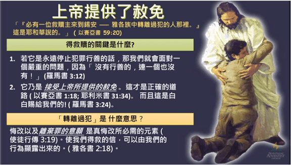 - 救贖的關鍵乃是接受 上帝所提供的赦免。 這才是正確的道路 (以賽亞書 1 章 18 節; 耶利米書 31 章 34 節)。 而且這救恩是白白賜給我們的 ! 就如羅馬書 3 章 24 節所說 :「如今卻蒙 上帝的恩典、因 基督耶穌的救贖、就白白的稱義。」