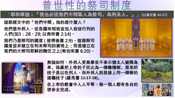 根據彼得前書 2 章 9 節, 我們乃是祭司的國度, 而這個祭司國度並非建立在利未祭司的資格上, 而是建立在我們的大祭司 耶穌的職任之上 (希伯來書6章20節)。