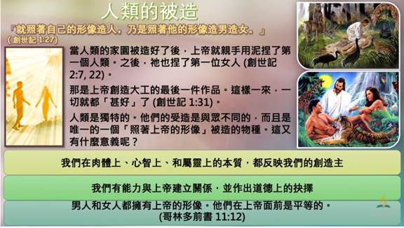 「上帝就照著自己的形像造人、乃是照著 祂的形像造男造女。」
