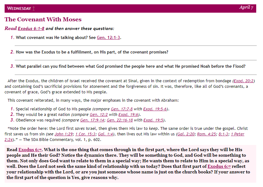 上帝自己採取主動拯救了以色列。 之後, 上帝又賜給了他們律法, 期望他們可以出於對 上帝的恩典, 而去遵守 祂。 福音也一樣, 上帝先拯救我們脫離罪惡, 然後 祂幫助我們在我們裏面活出 祂的律法 (彼得前書 2 章 24 節)。