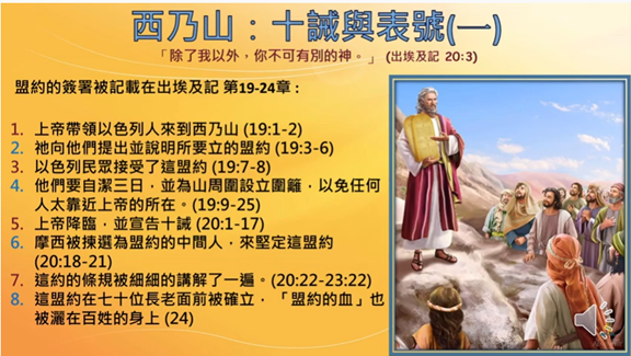 🎍 請看下一個題目是﹕「應許:上帝永遠的約 ~ 西乃山聖約」之 簽署盟約: 西乃山: 十誡與表號(二)