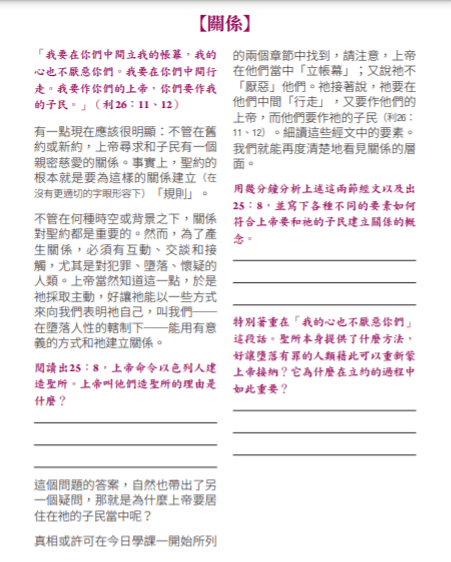 上帝要求以色列人為 祂建造聖所的主要原因, 就是要與他們同住。