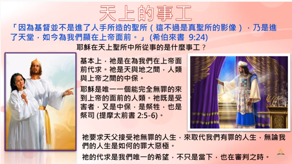 基本上 祂是在為我們在 上帝面前代求, 祂是天與地之間﹑人類與 上帝之間的中保。