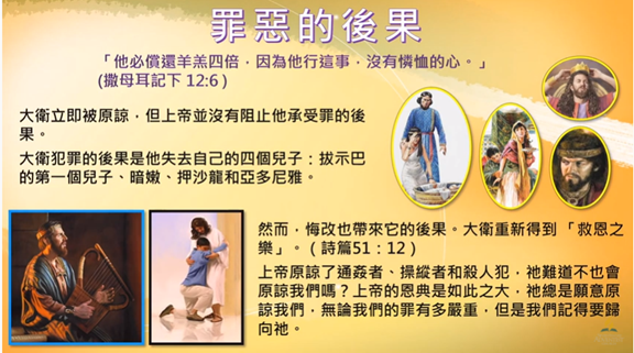 大衛立即被原諒,但上帝並沒有阻止他承受罪的後果。