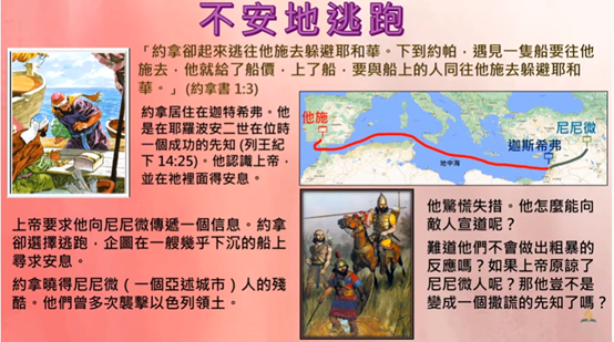 他心中有很多疑惑,因此他逃離 上帝, 不往尼尼微去,反而相反方向而去他施。