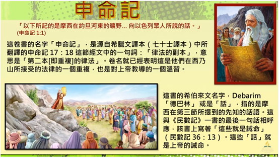 這本書的書名,已經表明了這是他們在西乃山所接受的律法的一個重複,也是對 上帝教導的一個溫習。