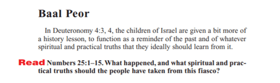 以色列人中出現瘟疫,一共死掉了二萬四千人。上帝要百姓對那公然的罪,作出嚴厲的回應。因為墮入最終會引致叛逆,並最終與 上帝完全分離。