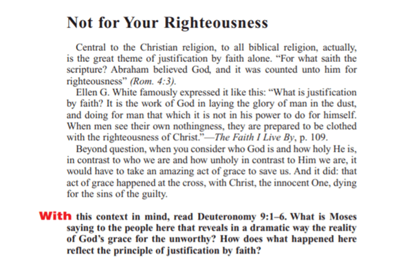 我們自己的義如何 — 也就是說: 我們遵守律法的程度如何— 是與我們的得救息息相關的嗎? 事實上,上帝在創造第一個人之前,就已經安排了我們的救贖計劃 (提摩太後書1章9節),以致在我們能夠做任何好事之前,耶穌就已經為拯救我們而死了 (羅馬書5章8節)。