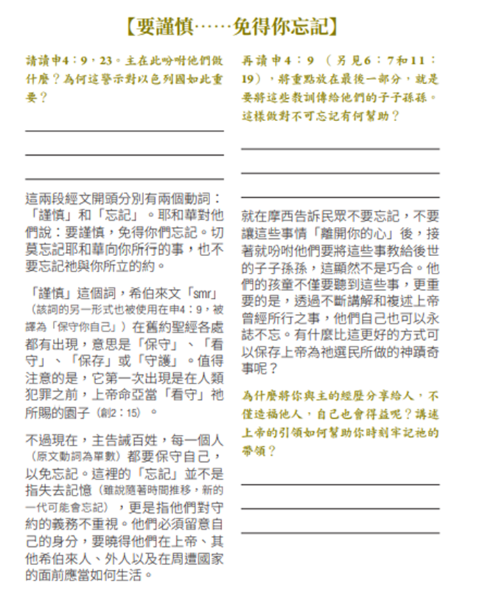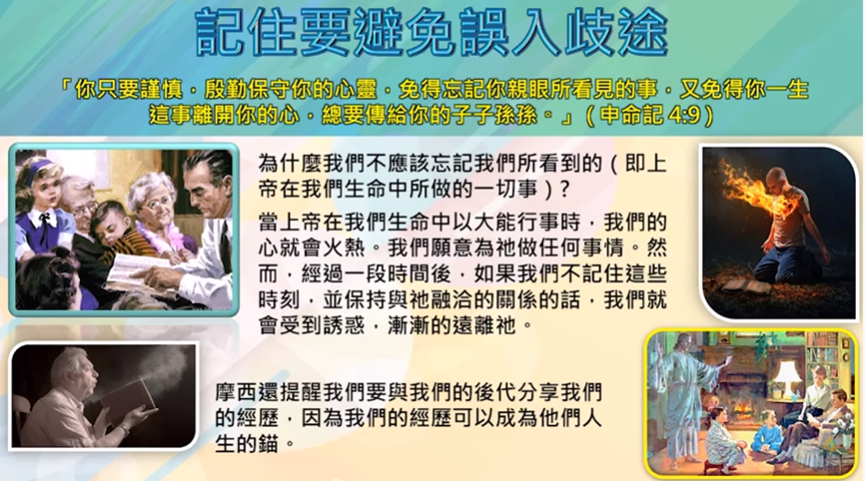 不但如此,摩西還一而再、再而三地提醒我們,要與我們的後代分享我們的經歷,