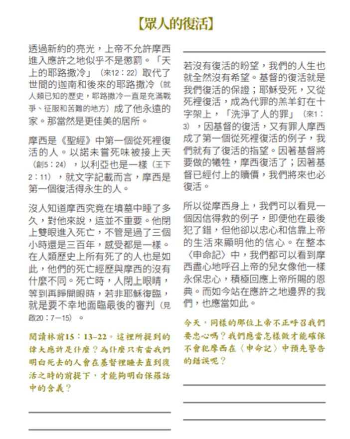 耶穌的復活保證了我們的救恩,我們擁有摩西同樣的盼望。