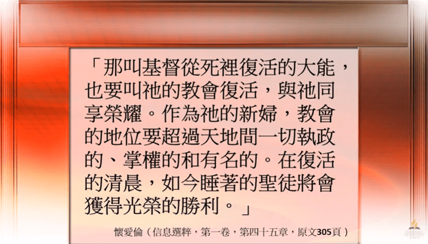 各位,願我們都把握著 基督復臨的應許,直到 祂復臨那日,我們面對面見 主。
