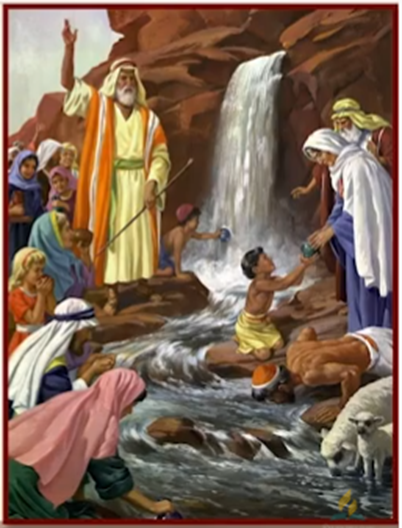 「你拿着杖去,和你的哥哥亞倫招聚會眾,在他們眼前吩咐磐石發出水來,水就從磐石流出,給會眾和他們的牲畜喝。」