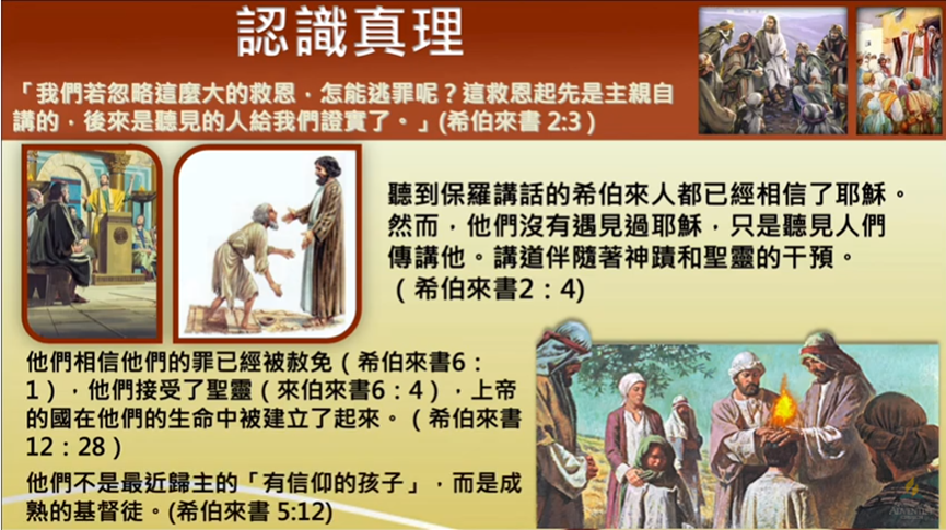 他們相信他們的罪已經被赦免 (希伯來書 6 章 1 節),
