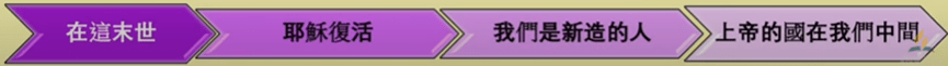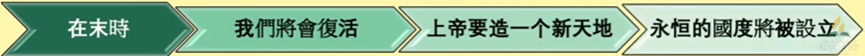 第二個詞就是「在末時」。 這個詞更加具體地談論到世界歷史的終結時候。「在末時」,信了 耶穌而死的人,將會復活。 上帝要做一個新天新地,而永恆的國度也在這個時候被設立的。 所以「在末時」這個詞,是特別提到世界歷史就要結束那段時間。