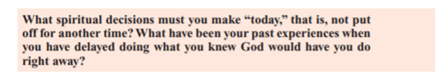 正如保羅所說「今日」,我們被呼召來承認 上帝一直以來,對我們的信實慈愛,並且我們有足夠的理由立刻就接受 祂的邀請。