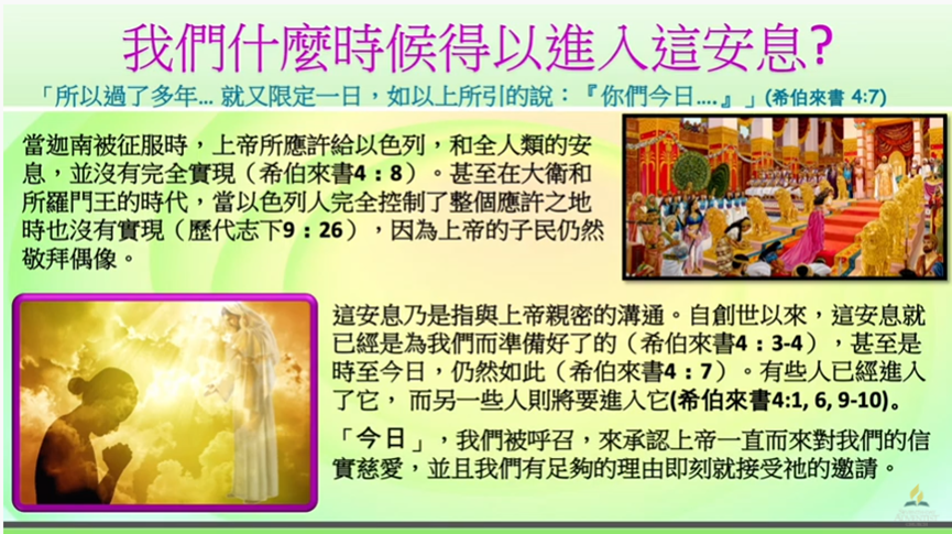 🎍 請看下一個題目:「就在這末世:希伯來書的信息」~ 我們的安息: 上帝的安息是怎麼樣的安息?