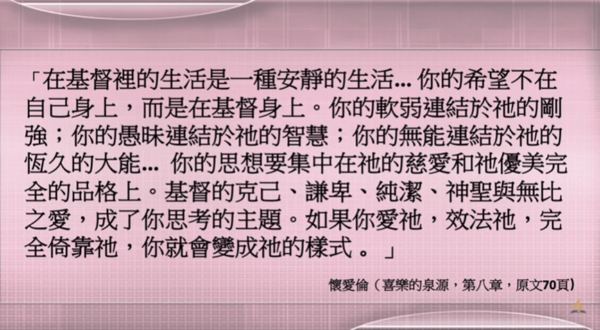 最後在「喜樂的泉源」,懷愛倫先知這樣說: