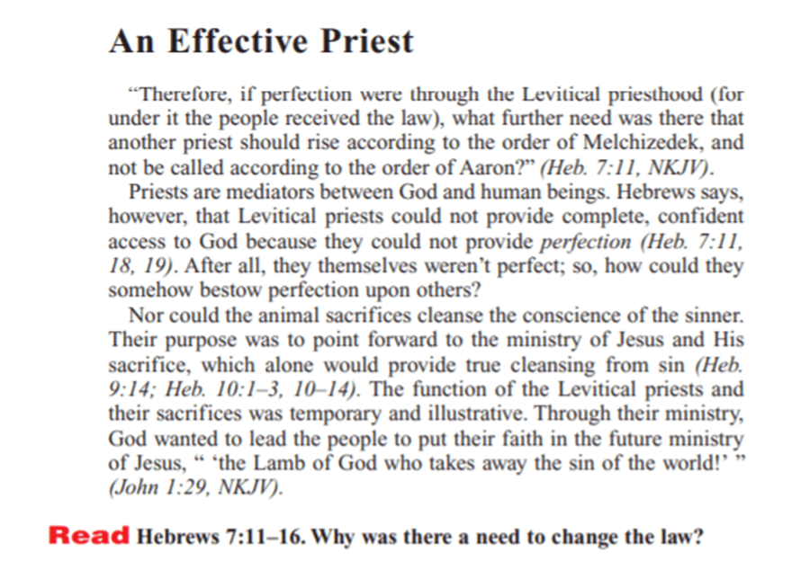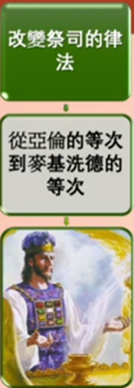 祭司的律法必須改變,因為阿倫的後裔中沒有一個是完全的