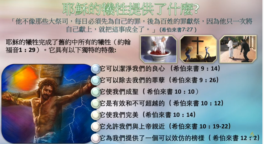 🎍 請看下一個題目:「就在這末世: 希伯來書的信息」耶穌,完美的祭牲 ~ 耶穌的犧牲在今天有什麼作用(一)