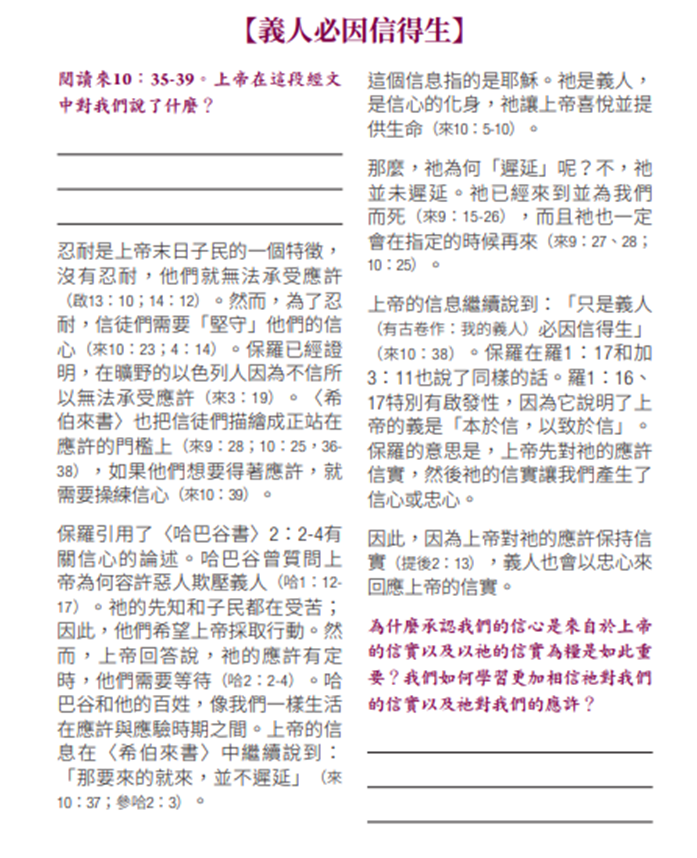 只是義人必因信得生。他若退後,我心裡就不喜歡他。