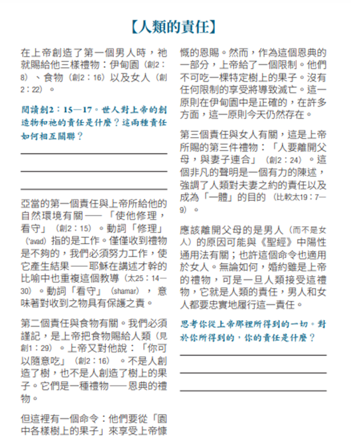「 耶和華上帝在東方的伊甸立了一個園子,把所造的人安置在那裏。」