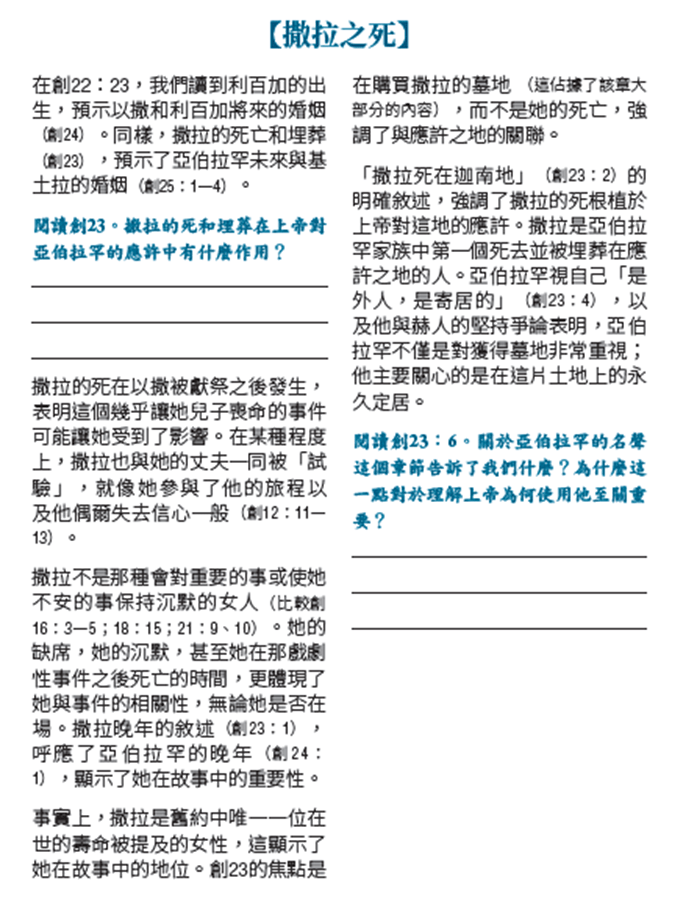 撒拉是舊約中唯一一個提到去逝年齡的女性,她也是第一個進入應許之地的女性。