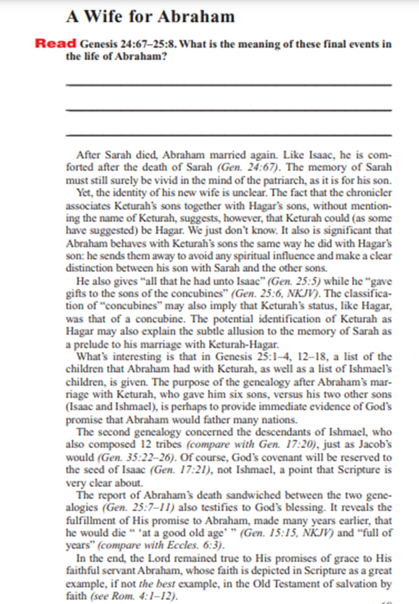 ( 創世記二十五章一、二節: 1 亞伯拉罕又娶了一妻,名叫基土拉。 2 基土拉給他生了心蘭、約珊、米但、米甸、伊施巴和書亞。)