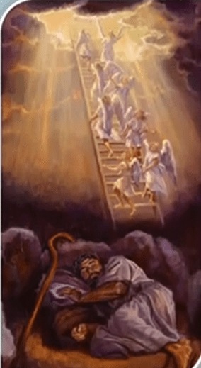 ( 創世記 28 章 12、13 節: 12 夢見一個梯子立在地上,梯子的頭頂着天,有上帝的使者在梯子上,上去下來。 13 耶和華站在梯子以上,說:「我是耶和華 — 你祖亞伯拉罕的 上帝,也是以撒的上帝;我要將你現在所躺臥之地賜給你和你的後裔。」)