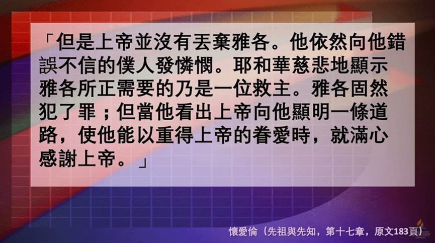 在「先祖與先知」,懷愛倫先知這樣說 :