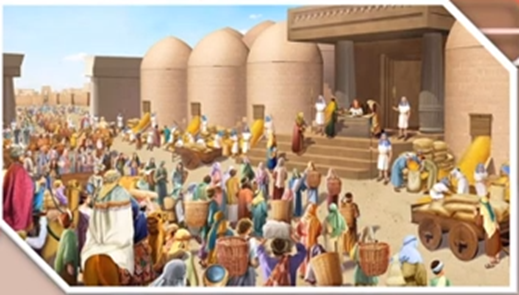 (創世記四十一章五十六、五十七節:56 當時饑荒遍滿天下,約瑟開了各處的倉,糶糧給埃及人;在埃及地饑荒甚大。 57 各地的人都往埃及去,到約瑟那裏糴糧,因為天下的饑荒甚大。 )