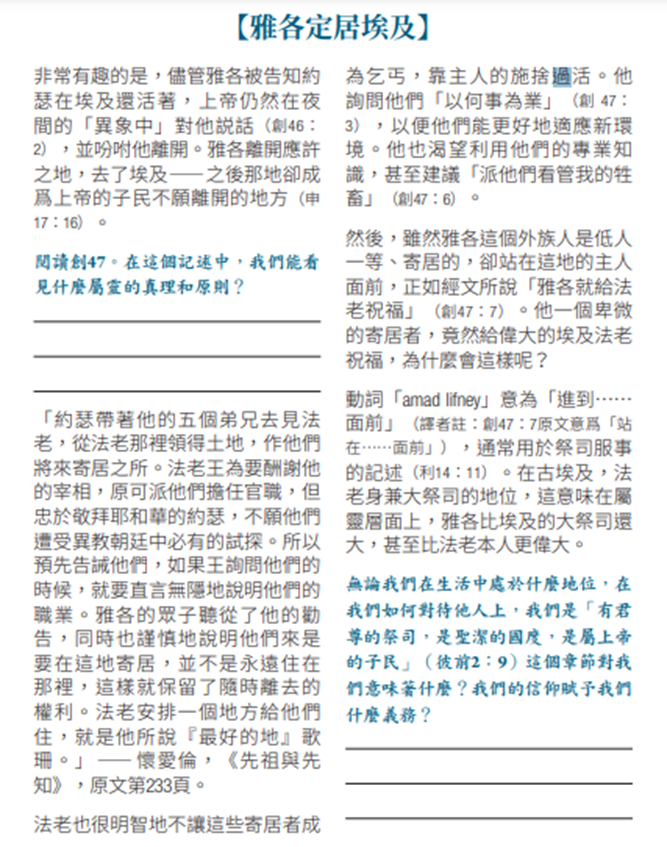 ( 創世記四十七章二、三節: 2 約瑟從他弟兄中挑出五個人來,引他們去見法老。 3 法老問約瑟的弟兄說:「你們以何事為業?」他們對法老說:「你僕人是牧羊的,連我們的祖宗也是牧羊的。」 )