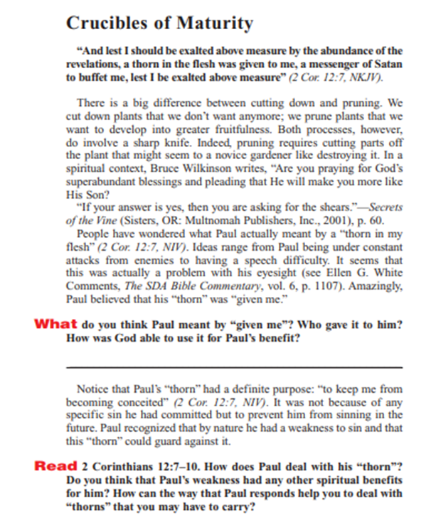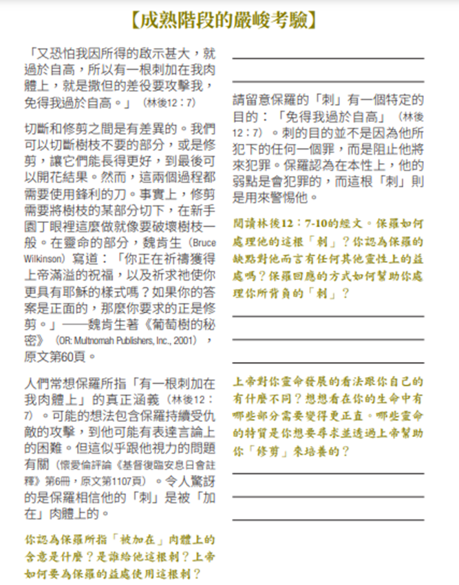 哥林多後書十二章十節: 我為基督的緣故,就以軟弱、凌辱、急難、逼迫、困苦為可喜樂的;因我甚麼時候軟弱,甚麼時候就剛強了。