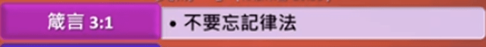箴言 3 章 1 節 : 我兒,不要忘記我的法則;你心要謹守我的誡命;
