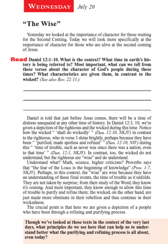 ( 但以理書十二章十節: 必有許多人使自己清淨潔白,且被熬煉;但惡人仍必行惡,一切惡人都不明白,惟獨智慧人能明白。