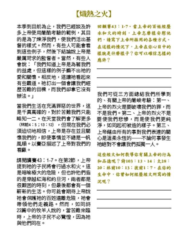 「與基督同受試煉」熾 熱 ~ 在極端高溫下生存
