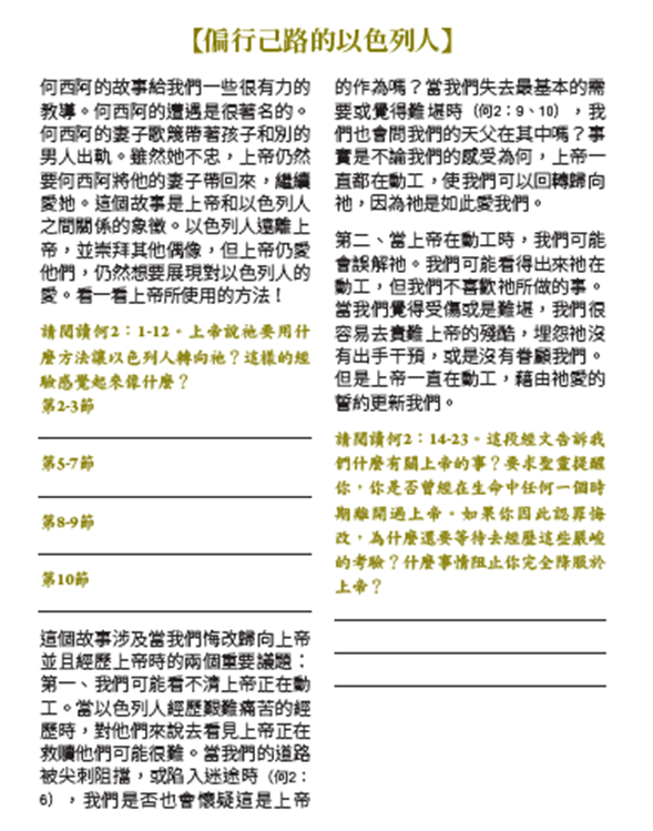 當時,以色列國離開了 上帝,去敬拜其他的神。因此 上帝允許他們經歷幾次試煉。