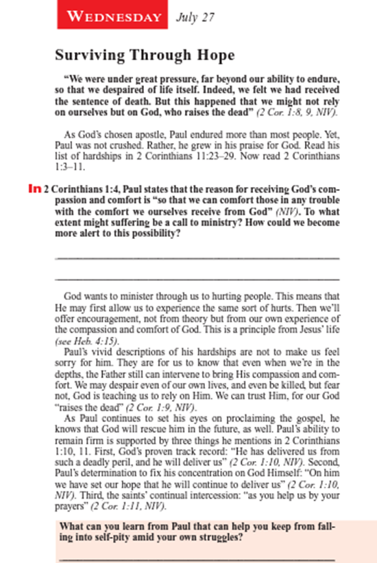 ( 哥林多後書 1 章 4 節: 我們在一切患難中,他就安慰我們,叫我們能用上帝所賜的安慰去安慰那遭各樣患難的人。)