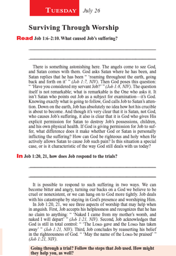 約伯的回應乃是敬拜上帝。正如在約伯記一章二十、二十一節所記載。
