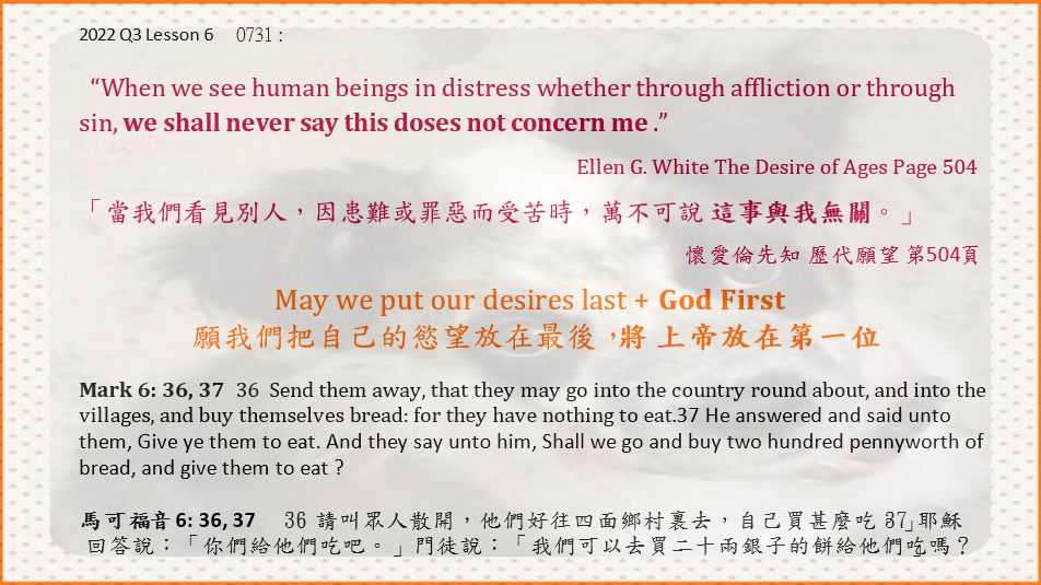 🎍 感謝 上帝引導 祂心愛的兒女們參閱此網站。我們會為每位代禱,祝願大家領受在 主耶穌內之平安、喜樂。 請大家緊握 上帝的手,忍耐等候那公義 上帝的應許,耶穌基督第二次的從雲彩榮耀降臨來迎接我們。互勉 !
